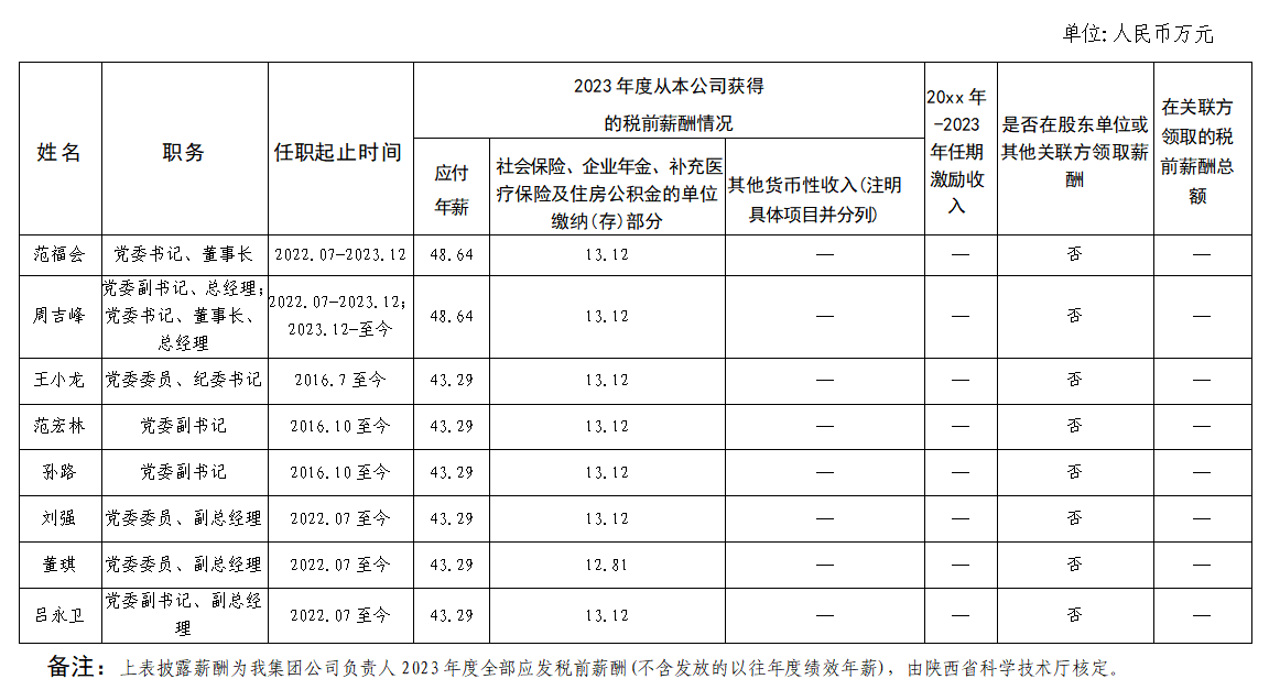 陜西科技控股集團(tuán)有限責(zé)任公司2023年度負(fù)責(zé)人薪酬信息披露